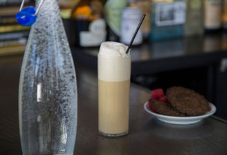 In a blender, mix all the ingredients together. Add some orange zest and the rind.